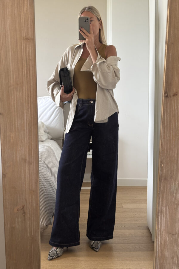 New In55,00 €Pantalone palazzo con pences e tasche laterali con abbottonatura frontale con bottone e zip.