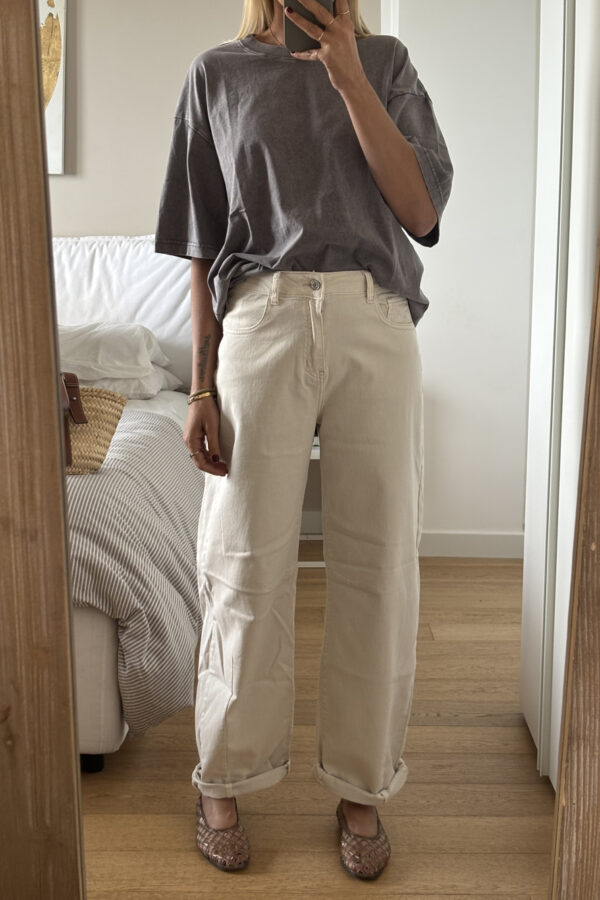 New In50,00 €Pantalone in misto cotone con pences e passanti, tasche laterali e abbottonatura frontale con bottone.