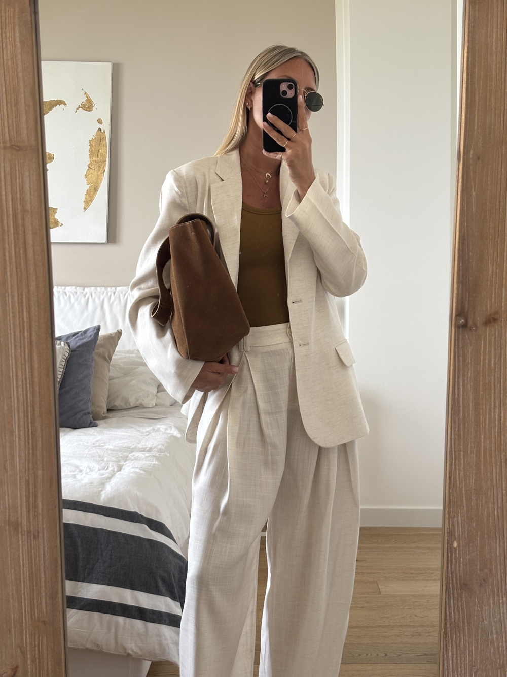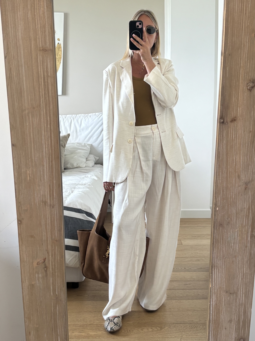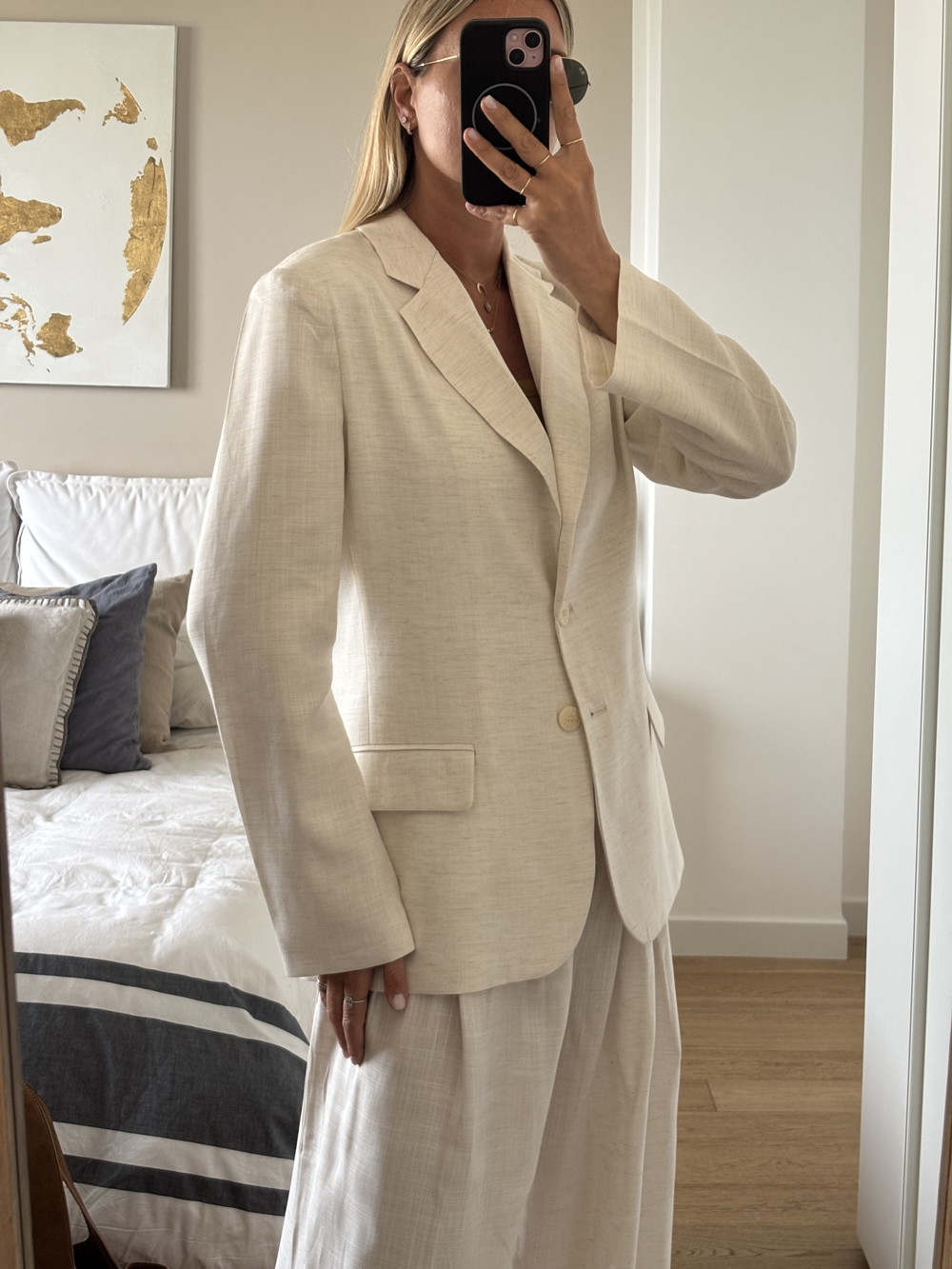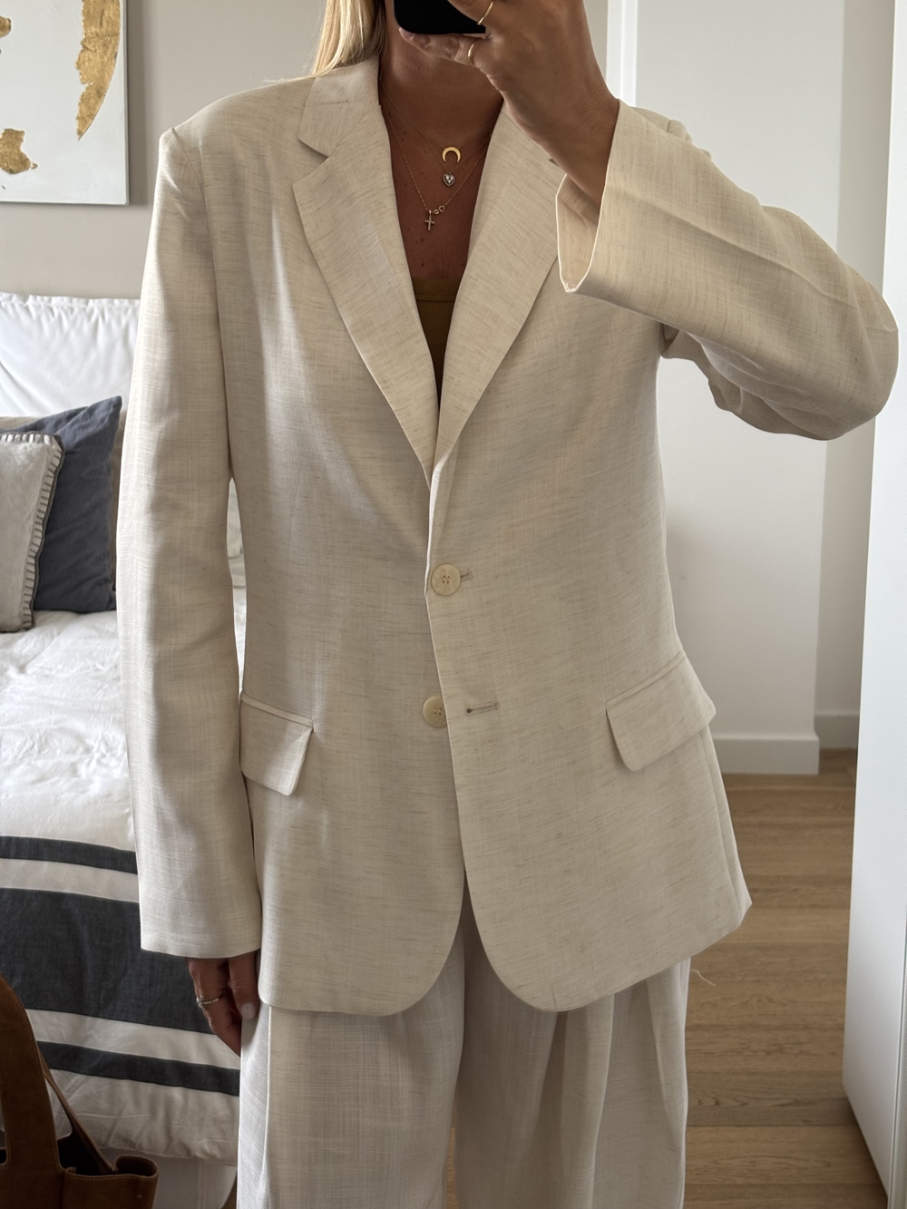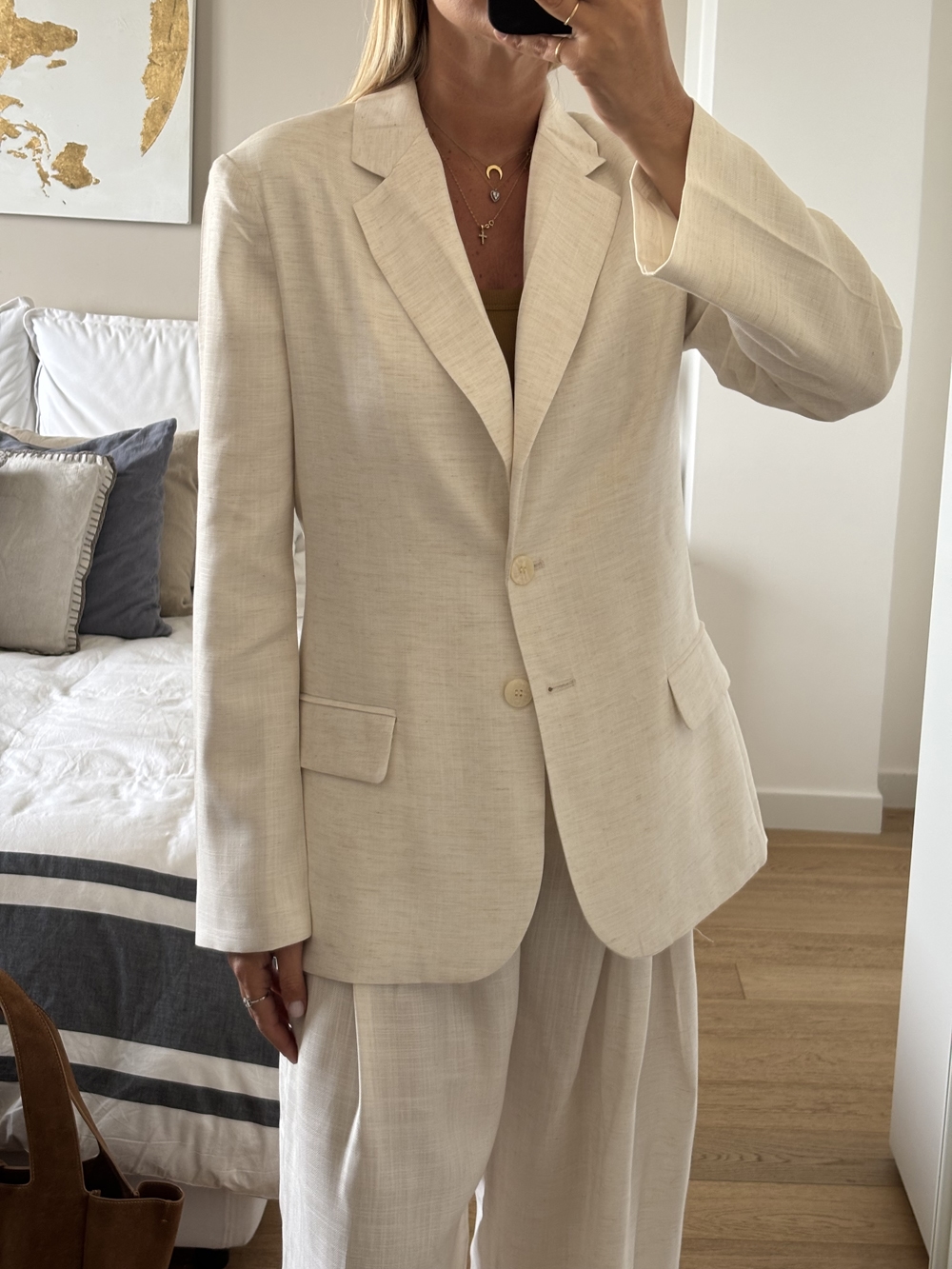 Blazer monopetto con bottoni in misto lino con collo a reverse e tasche con patta.