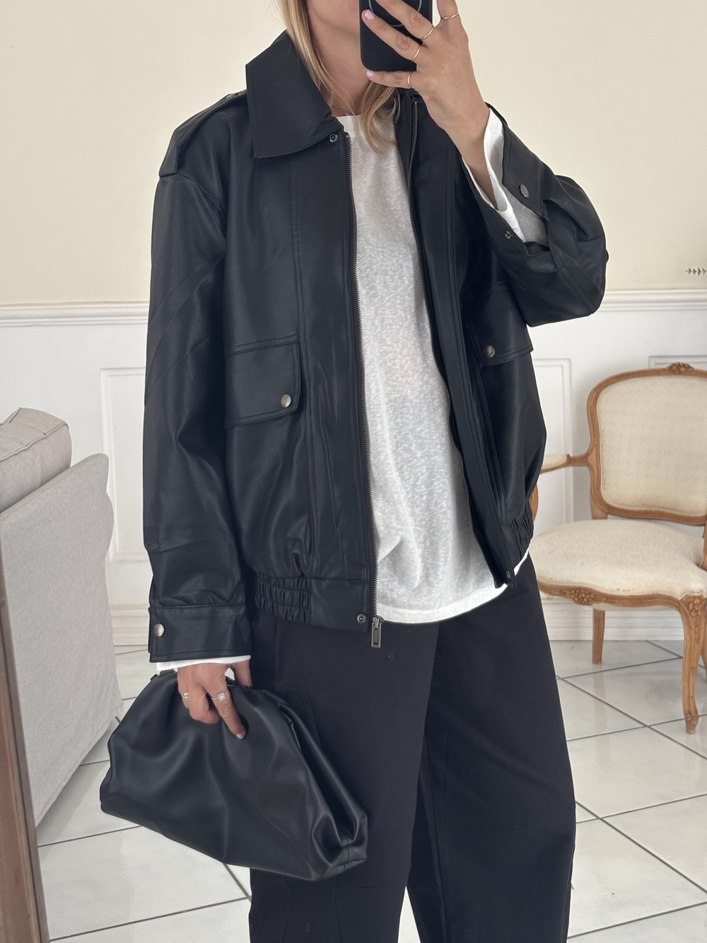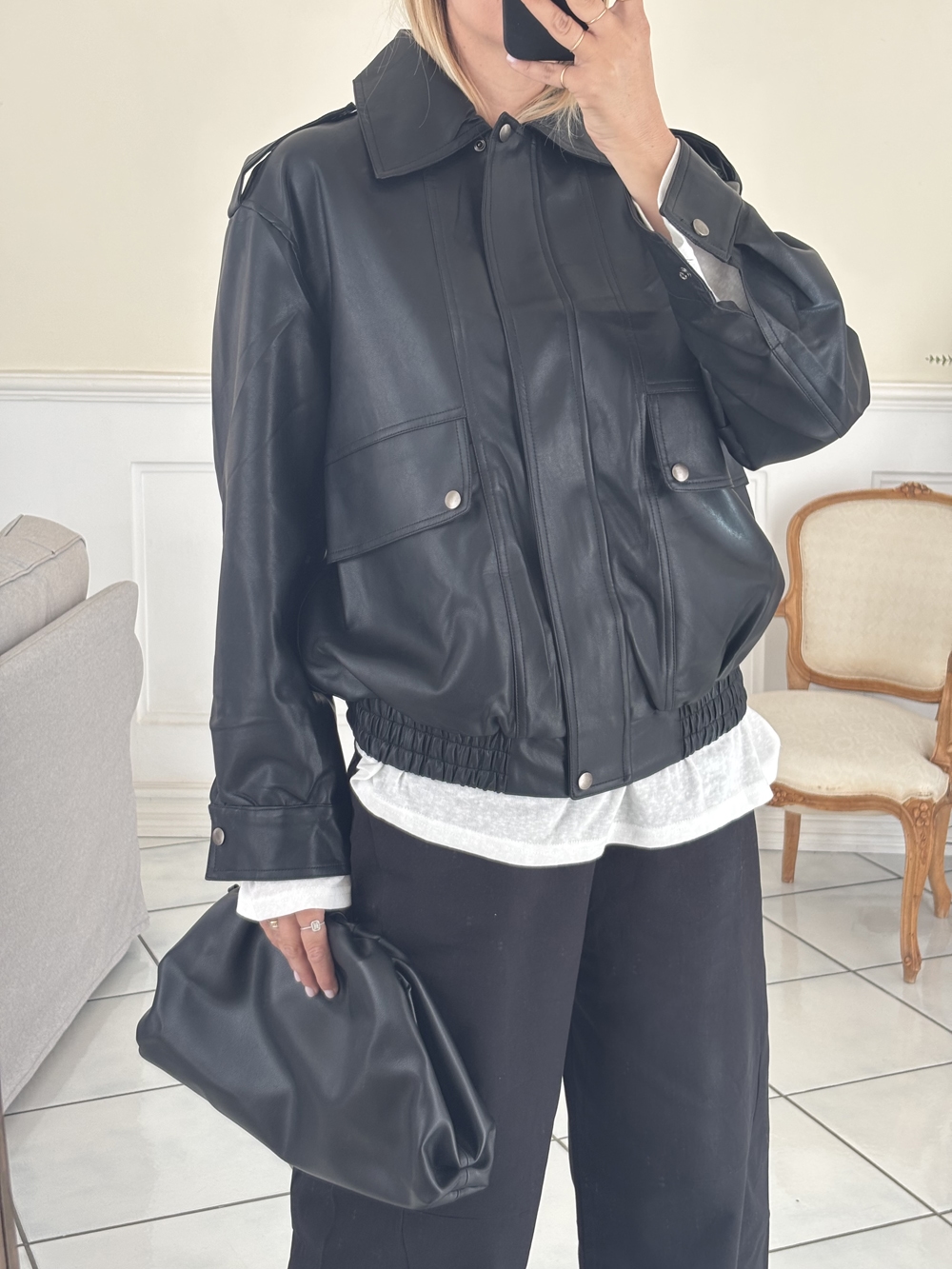 Giubbotto con abbottonatura frontale con cerniera e tasche laterali con ciappa.