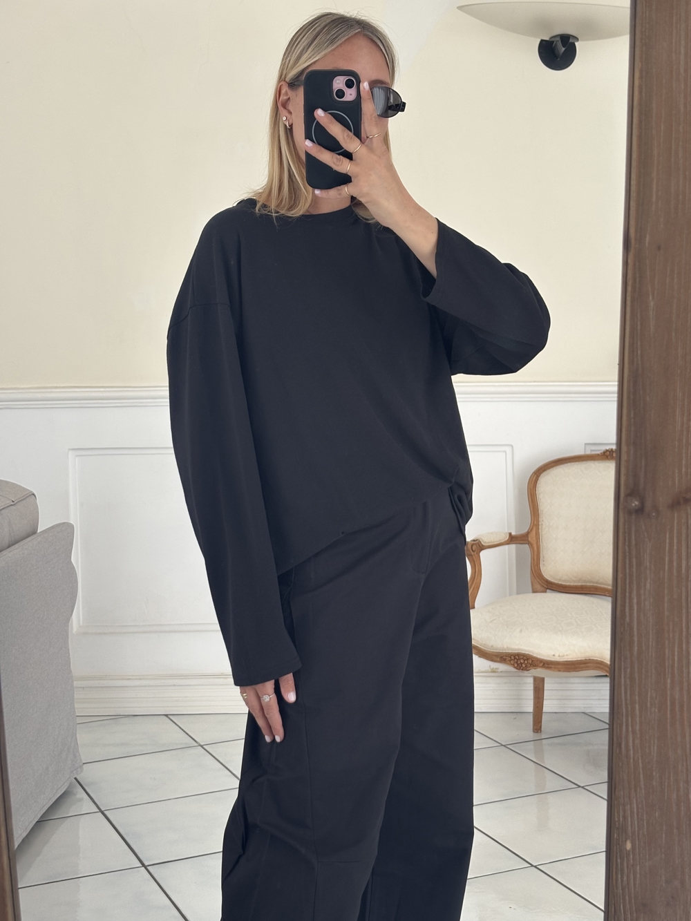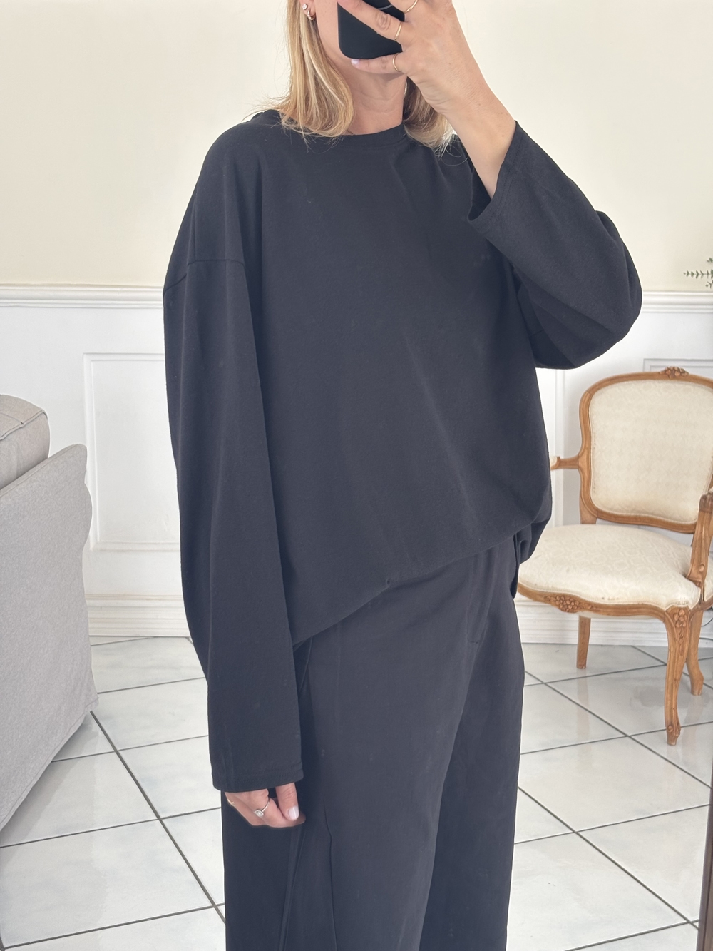 T-shirt girocollo e maniche lunghe in maglina di cotone.